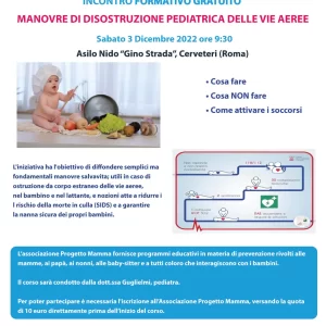 L’iniziativa ha l’obiettivo di diffondere semplici ma fondamentali manovre salvavita, utili in caso di ostruzione da corpo estraneo delle vie aeree, nel bambino e nel lattante e nozioni atte a ridurre il rischio della morte in culla (SIDS) e a garantire la nanna sicura dei propri bambini. ...