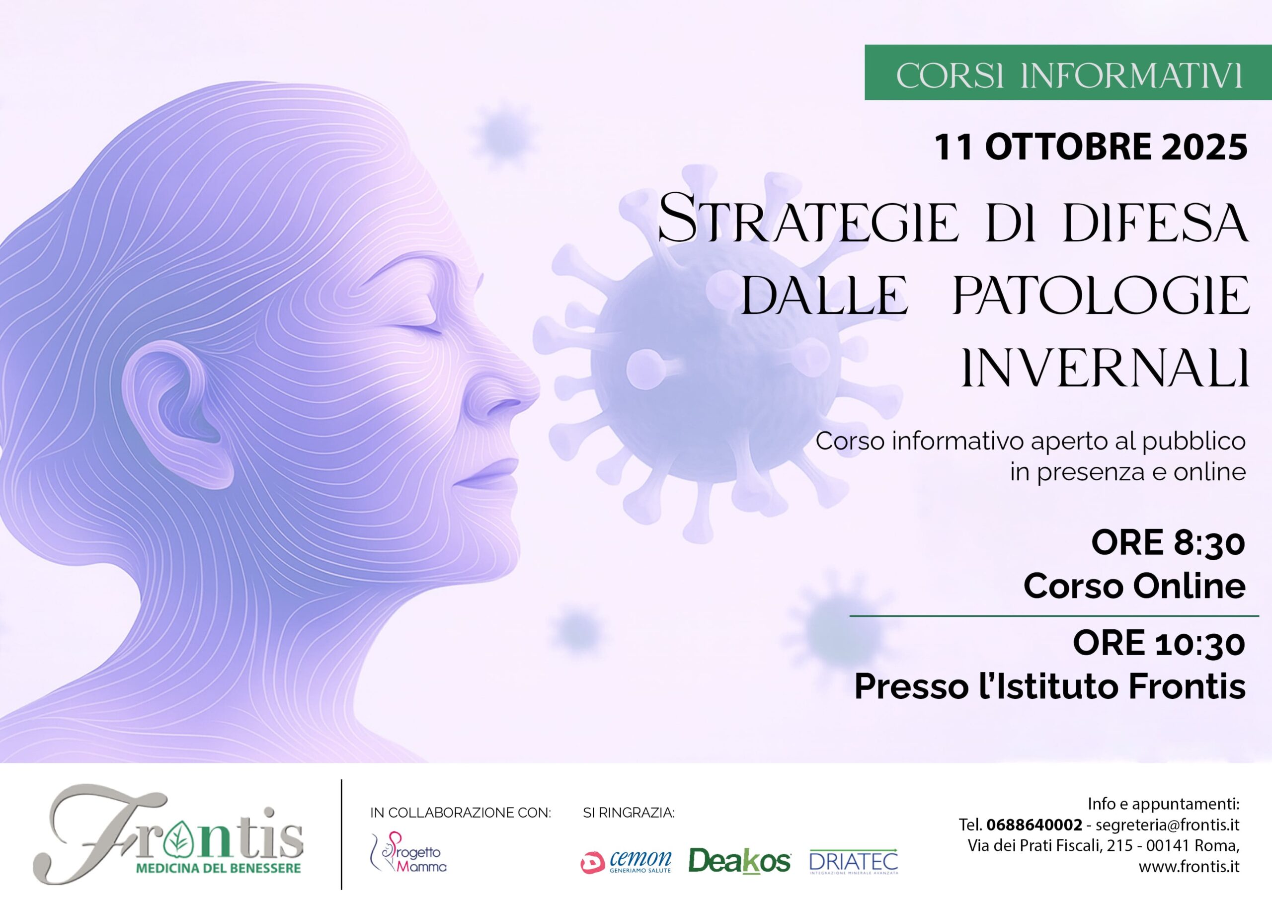 Preparati al meglio per la stagione fredda con il nostro nuovo e importantissimo corso informativo! L’11 Ottobre 2025, si terrà un evento dedicato interamente alle Strategie di Difesa dalle Patologie Invernali.